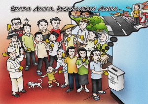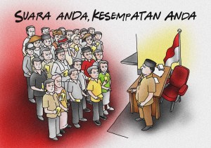 The postcards returned in the Your Voice, Your Opportunity campaign reflect public opinion on the quality of district government in Blora. To fulfill the promise to campaign participants that postcard results would be shared with district head candidates, and to encourage the candidates to pay attention, a follow-on voter education activity was conducted. Postcard outcomes were tabulated and shared with all registered candidates. All candidates were given the same word limit and deadline to provide an official response. Both the postcard outcomes and candidate responses were then published in a two-page special voter education feature in DIVA, a local Blora newspaper, in the two week campaign period prior to the elections.